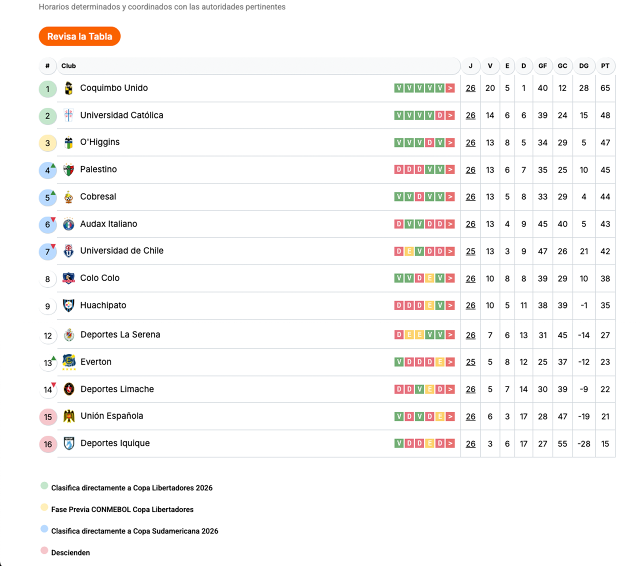Revisa la Tabla de Posiciones